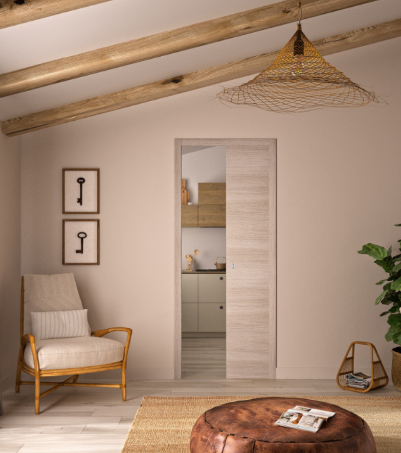 Optimisez vos espaces avec la porte à galandage, qui coulisse discrètement dans la cloison pour libérer toute la surface disponible. La porte à galandage est idéale pour les intérieurs modernes souhaitant fluidité et design. Elle permet une circulation confortable et une intégration parfaite dans toutes les pièces, même les plus petites.